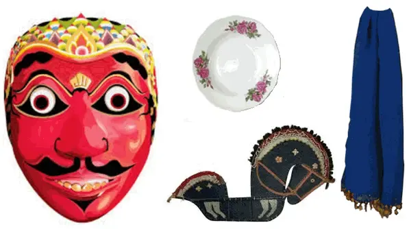 Contohnya seperti selendang, keris, topeng, piring, panah, dan lain sebagainya.